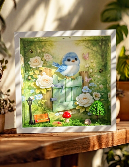 Hívd meg a varázslatot a gyerekszobába ezzel az egyedi, kézzel összeállított mesedobozzal! Ez a különleges dekoráció nem csupán a szemnek kedves: az aprólékosan kidolgozott részletek – a kerítésen pihenő kék kismadár, a bújócskázó süni és a gomba – azonnal munkára fogják a gyermek képzeletét. A mesedoboz ösztönzi a történetalkotást, így a kicsik észrevétlenül, játék közben fejlesztik szókincsüket és narratív gondolkodásukat. Minden egyes elem egy-egy újabb kaland kezdete lehet, ahol a gyermek válik a mesélővé, saját birodalmat építve a látottak köré. A lágy fények és a természetközeli színek megnyugtató légkört teremtenek, így esti meseolvasáshoz vagy békés délutáni játékhoz is tökéletes társ. Ez a dekoráció valódi "meseindító" eszköz, amely segít kibontakoztatni a gyermeki kreativitást és az alkotás örömét. Válaszd ezt a mesedobozt ha olyan ajándékot keresel, amely maradandó élményt és önfeledt, mesés perceket szerez!