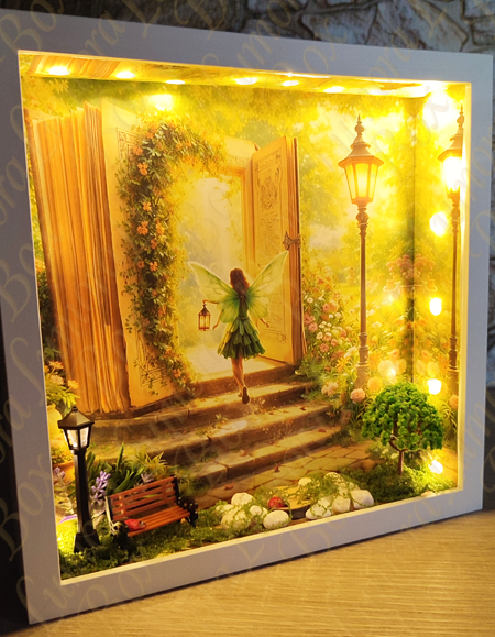 Van egy ajtó, ami nem a falon nyílik… hanem egy történetben. Ebben a különleges, kézzel készített árnyékdobozban egy tündér lép át a könyv lapjai közül egy varázslatos kertbe. A lágy fény, a kis pad, az apró lámpás és a gondosan elhelyezett részletek mind egy saját, miniatűr mesevilágot teremtenek.Ez a doboz nemcsak dekoráció – hanem egy pillanatnyi elcsendesedés. Egy emlékeztető arra, hogy a varázslat néha ott kezdődik, ahol kinyitunk egy könyvet… vagy a szívünket. Tökéletes választás nappaliba, hálószobába vagy egy meghitt olvasósarokba – bárhová, ahol szeretnél egy kis fényt és mesét csempészni a mindennapokba.